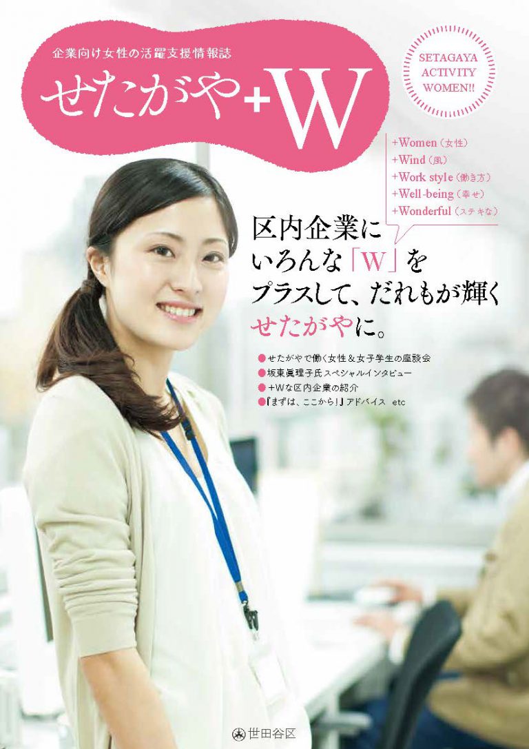 世田谷区経済産業部 工業・ものづくり・雇用促進課様からの委託で、企業向け女性の活躍支援情報誌『せたがや+W』を制作しました。トライは取材・編集・デザイン・DTP・印…