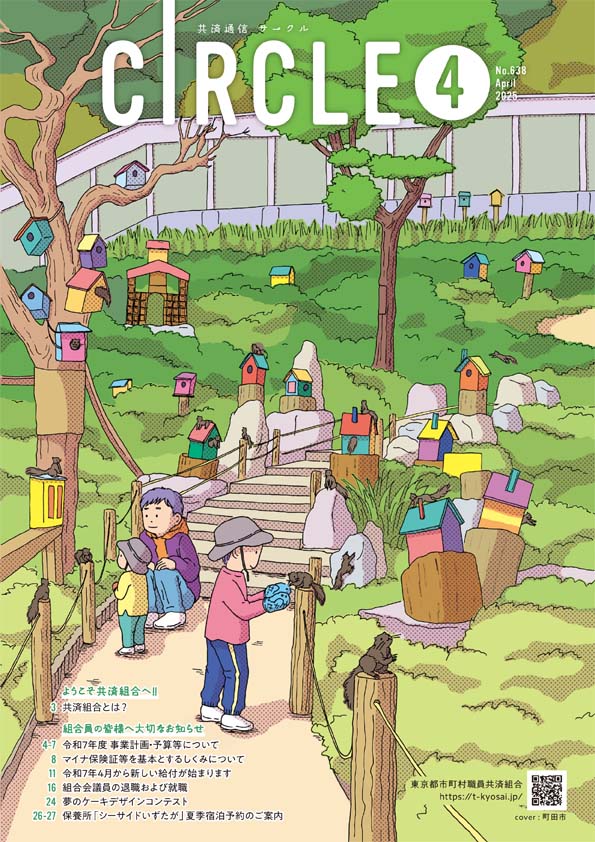 東京都市町村職員共済組合様の組合員向け広報誌「CIRCLE」を制作しています。表紙は、季節に合わせた都内名所をイラストレーターが描き起こしています。