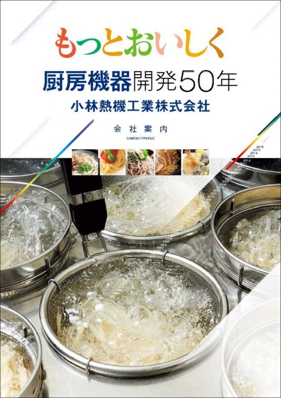 小林熱機工業株式会社様の会社案内を制作しました。飲食店向けの麺ゆで機製造メーカーとして長年の実績をお持ちの小林熱機工業様。機器開発へのこだわりや特徴などを取材し、分かりやすくご紹介。取材・原稿作成からデザイン・印刷まで対応いたしました。