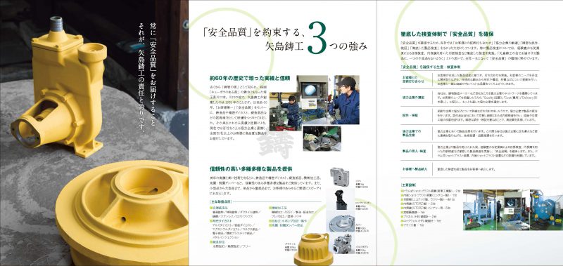 会社案内 クライアント矢島鋳工株式会社様会社案内 矢島鋳工株式会社様の会社案内を制作しました。鋳物製品の技術商社として、開発・品質検査などを担当する矢島鋳工様。事業内容を分かりやすく伝えるため、長野工場での検査風景の様子なども撮影し紹介しています。 弊社では、取材・原稿作成、撮影、デザイン・印刷を対応いたしました。 タグ#スチル撮影#デザイン印刷#会社案内・パンフレット#編集ライティング#製造業会社案内・事業パンフレットの事例一覧へ