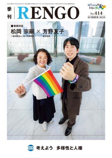労働組合の全国中央組織である連合様の刊行誌、季刊『RENGO』を制作しています。働く人の視点から、いま社会で起きていることや、連合が力を入れている運動などをわかりやすく解説されている同誌。トライでは主にデザイン・DTPを担当しています。「読みやすさやわかりやすさにこだわった、ストレスなく読める誌面デザイン」というお客様からのオーダーに応えるため、担当スタッフは記事の意図を正確に捉えられるように労働分野の専門知識も学び、制作にあたっています。